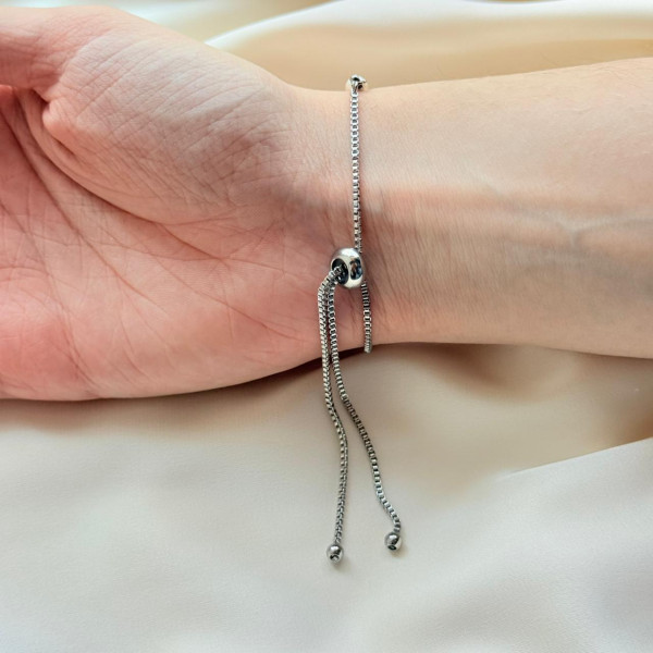 Браслет оснащён удобной регулируемой застёжкой с подвижным элементом, позволяющей точно подогнать украшение под запястье. Минималистичный дизайн делает этот аксессуар универсальным выбором для повседневных образов, делового стиля или вечерних выходов.