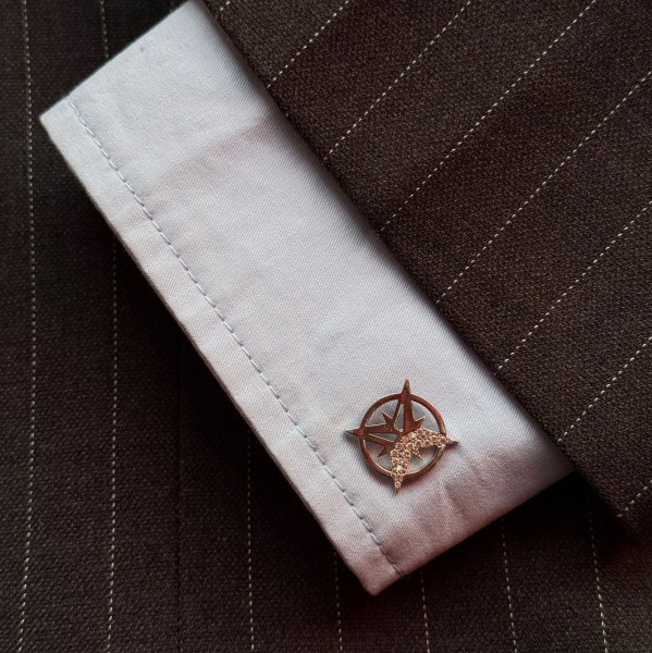 Элегантная брошь в форме стилизованной розы ветров сочетает в себе утончённый дизайн и современный акцент. Центральный элемент выполнен в виде аккуратного компаса, символизирующего движение, новые горизонты и уверенность в собственном пути. Верхняя часть украшена изящной фигурой, усыпанной мелкими мерцающими камнями, которые добавляют изделию блеск и выразительность.