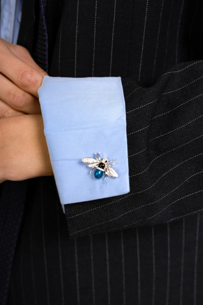 Элегантная брошь-пин в форме мухи — оригинальный и стильный аксессуар с выразительным дизайном. Украшение выполнено в серебристом оттенке и декорировано сверкающими стразами, которые подчёркивают изящество крыльев и деталей. Объёмное тельце с глубокой сине-зелёной вставкой создаёт эффект благородного сияния и придаёт украшению характер.