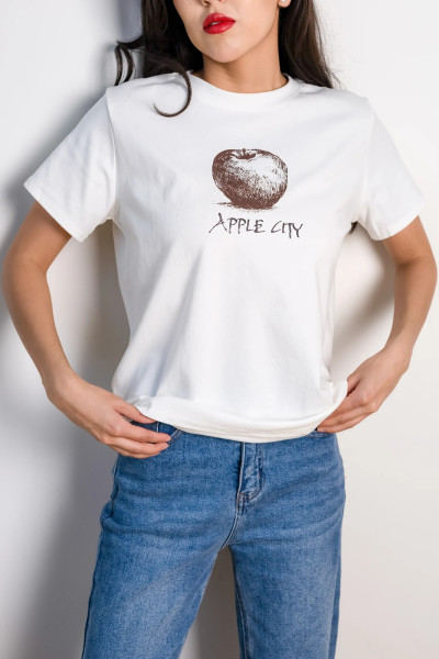 Этот лаконичный принт — не просто графика, а стильное напоминание о городе с характером. Чёрное яблоко как символ силы, контраста и городской энергии — для тех, кто носит свой стиль с гордостью.