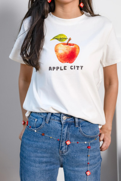 Этот лаконичный принт — не просто графика, а стильное напоминание о городе с характером. Красное яблоко как символ силы, контраста и городской энергии — для тех, кто носит свой стиль с гордостью.