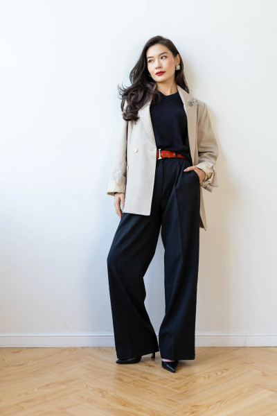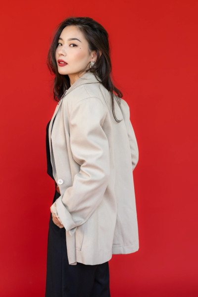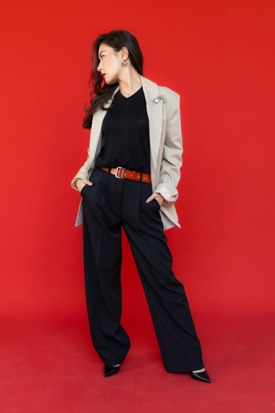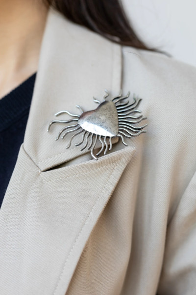 Стильный Совет: Для создания акцентного образа добавьте к пиджаку крупную винтажную брошь на лацкан, как показано на модели.