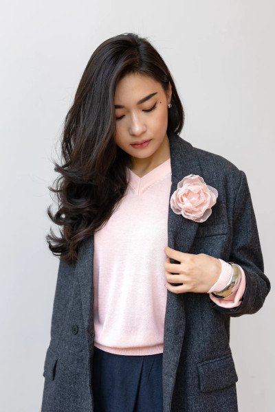 Стильный совет: Добавьте яркую брошь или аксессуар на лацкан (как на фото), чтобы сделать образ более выразительным и персонализированным.