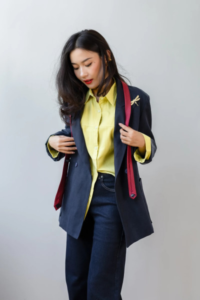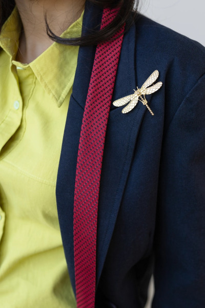 Стильный Совет: Для создания акцентного образа добавьте к пиджаку крупную винтажную брошь на лацкан, как показано на модели.