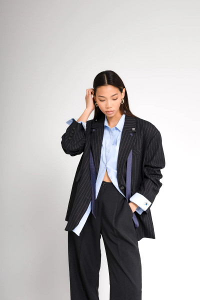 Пиджак в полоску синий