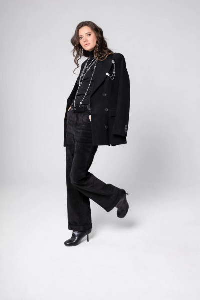 Этот пиджак из мягкого, бархатистого вельвета насыщенного чёрного оттенка сочетает в себе элегантность и характер. Благодаря продуманному приталенному крою он подчёркивает линию талии и создаёт благородный, собранный силуэт.