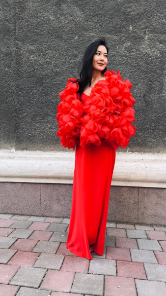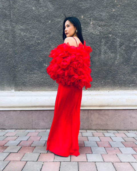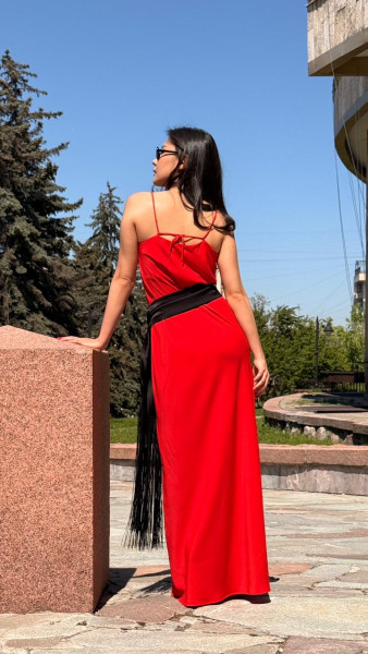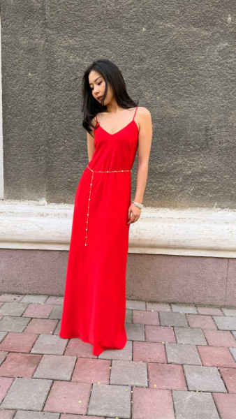 Элегантное длинное платье в насыщенном красном цвете — идеальный выбор для вечерних мероприятий, торжеств и особых случаев. Лёгкая струящаяся ткань мягко облегает фигуру, создавая изящный силуэт и эффект плавного движения.
