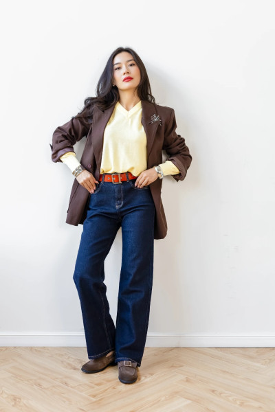 Пуловер с V-образным вырезом желтый
