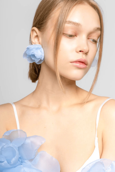 Нежные серьги ручной работы, выполненные из лёгкой итальянской органзы. Воздушная текстура ткани создаёт эффект цветка и придаёт образу утончённость и мягкий акцент.
