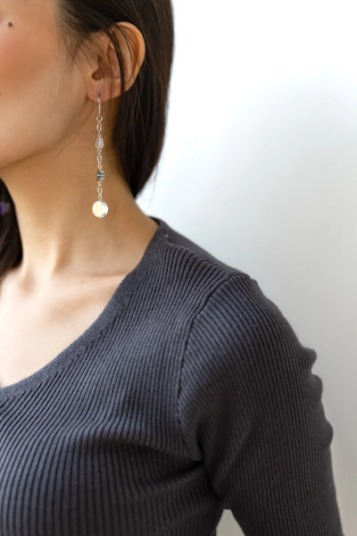 Элегантные серьги из коллекции Queens — воплощение утончённости и легкости. В дизайне сочетаются натуральный горный хрусталь, элегантный гематит и лаконичная цепочка из ювелирной стали, создавая сбалансированный образ. Лёгкие, подвижные и воздушные — идеально подойдут как для повседневных, так и для особенных выходов.