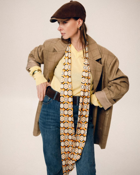 Добавьте яркий акцент в свой образ с этим стильным шарфом с необычным узором. Мягкая, гладкая ткань приятно ложится на кожу и красиво драпируется, создавая элегантный и современный вид. Универсальный аксессуар, который можно носить как на шее, так и завязать на сумке или использовать как повязку на голову.