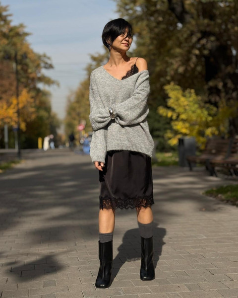 Детали: комплект из двух изделий (свитер + майка), свободный крой, мягкая текстура